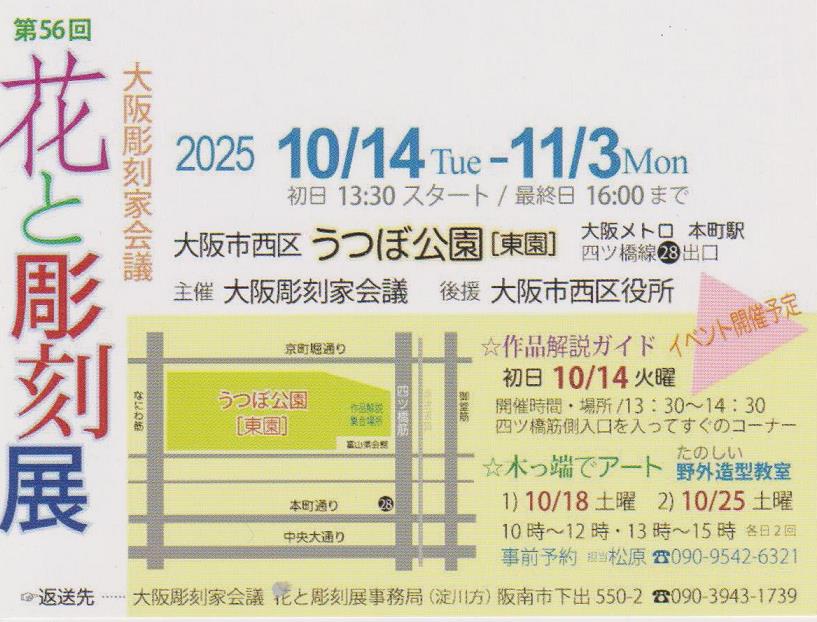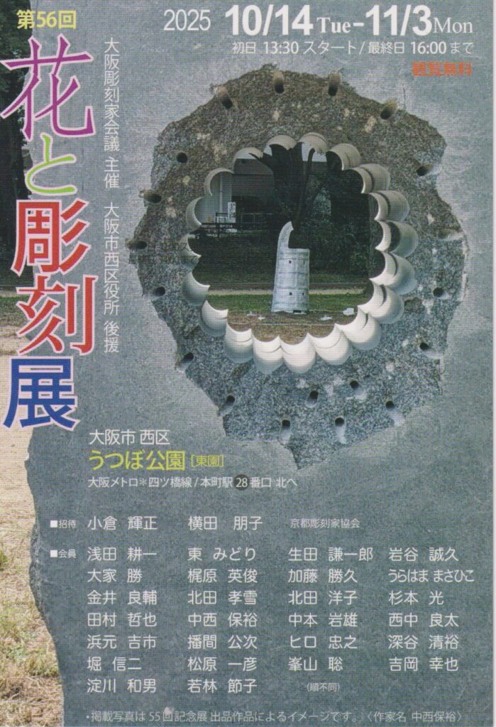私の所属する大阪彫刻家会議の花と彫刻展が開催されます。
