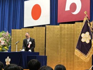 式典では、同窓会から卒業生への記念品が贈呈されました。これを受け、入会者代表からは「学んだことをこれからの活動に生かし、伝統ある図南会の一員として、先輩方の築かれた歴史を受け継いでいきたい」と、決意に満ちた力強い挨拶がありました。