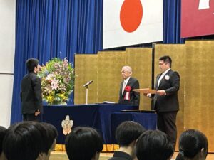 - 雛鵬賞授与: 「正大・剛健・寛厚」の綱領に基づき、勉学・部活・学校行事で模範となった生徒へ、同窓会長より「雛鵬賞」が授与されました。