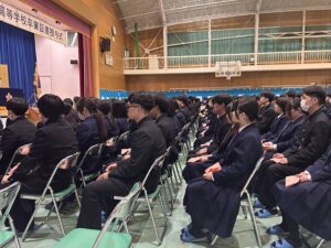 - 頼もしい返事: 担任の先生の呼名に対し、「ハイ!」と大きな声で起立する卒業生の姿は非常に頼もしく、会場を圧倒しました。